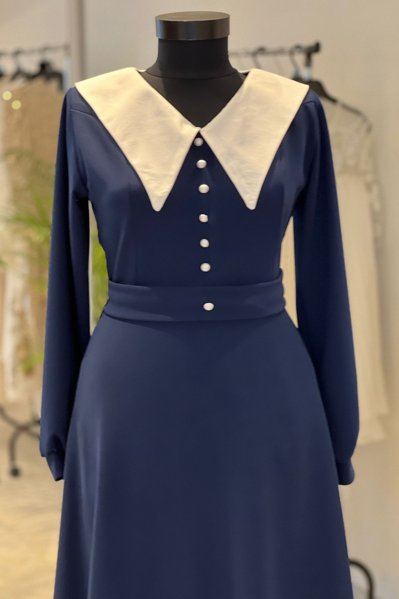- decolteu in V cu guler alb, fixat pe rochie;