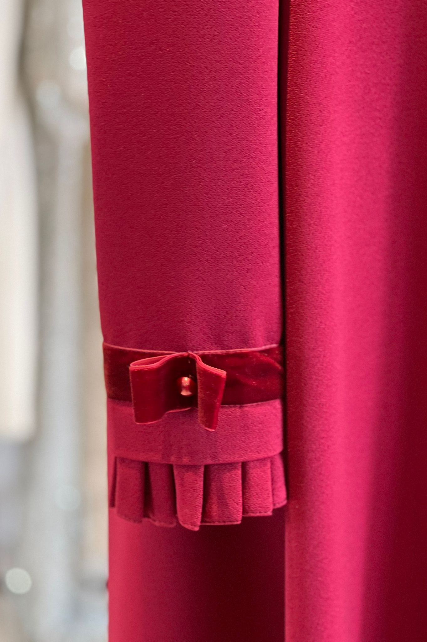 - maneci lungi cu manseta, panglica de catifea si nasture;
